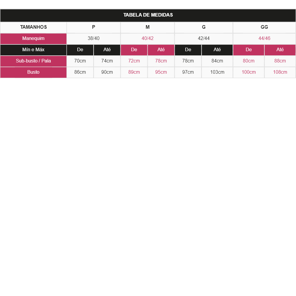 Busto: de 86cm até 90cm